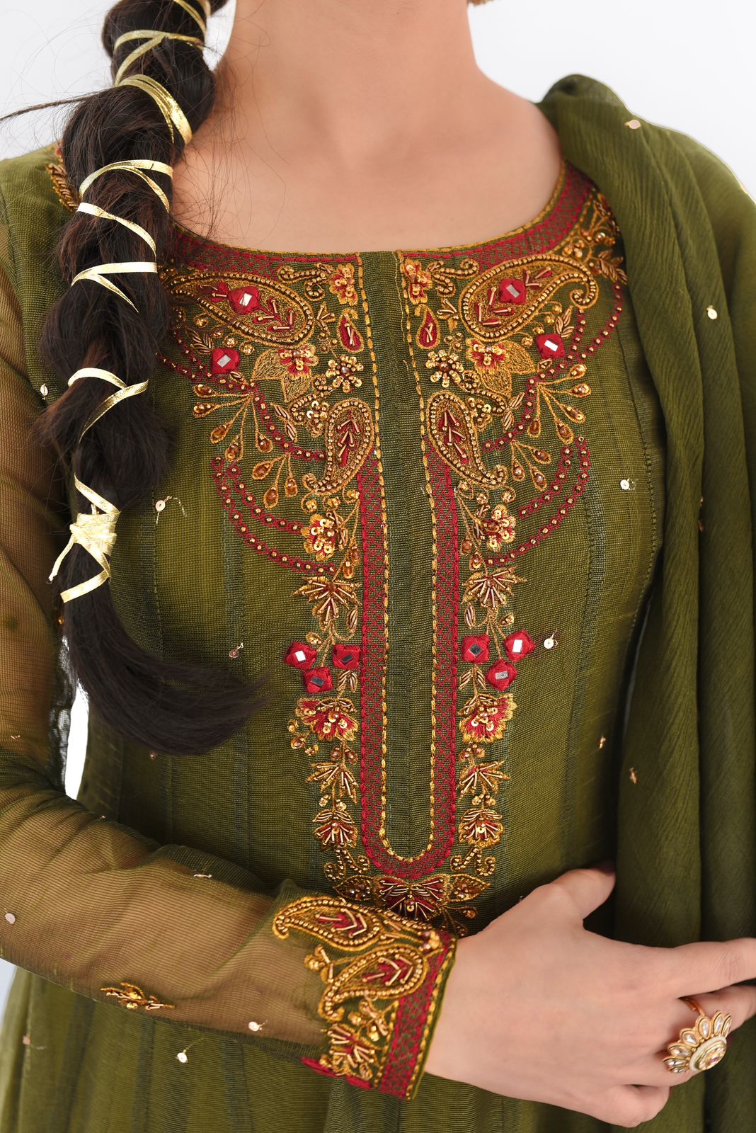 * Sitara , sheesha and zardozi handwork on bodice and sleeves of pishwaas