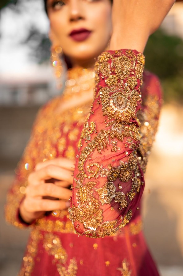 * Dabka, stone, dargozi and sitara handwork all over bridal dress