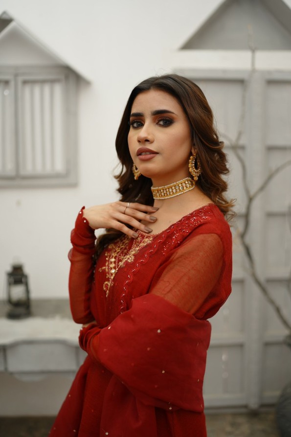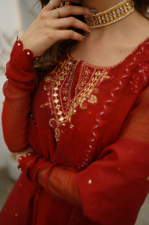* Golden zarri embriodery and dhaga embriodery on bodice/neckline
