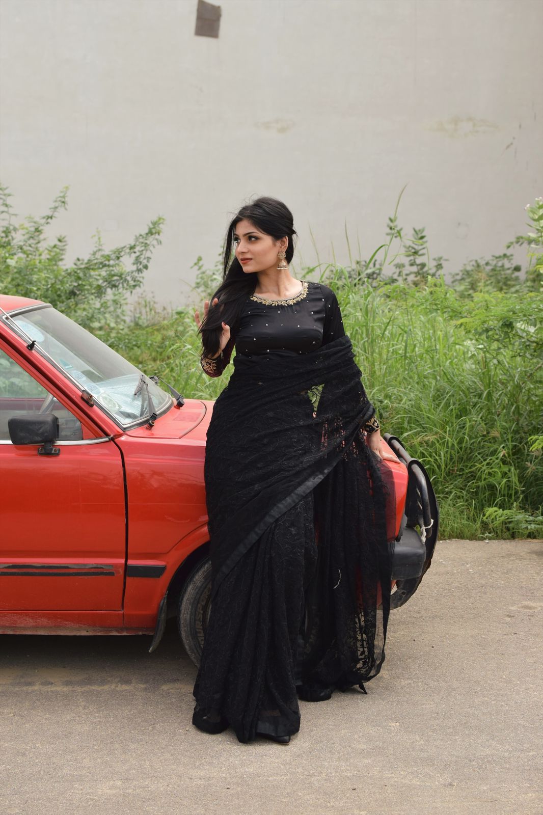 * full stitched saree with pleats