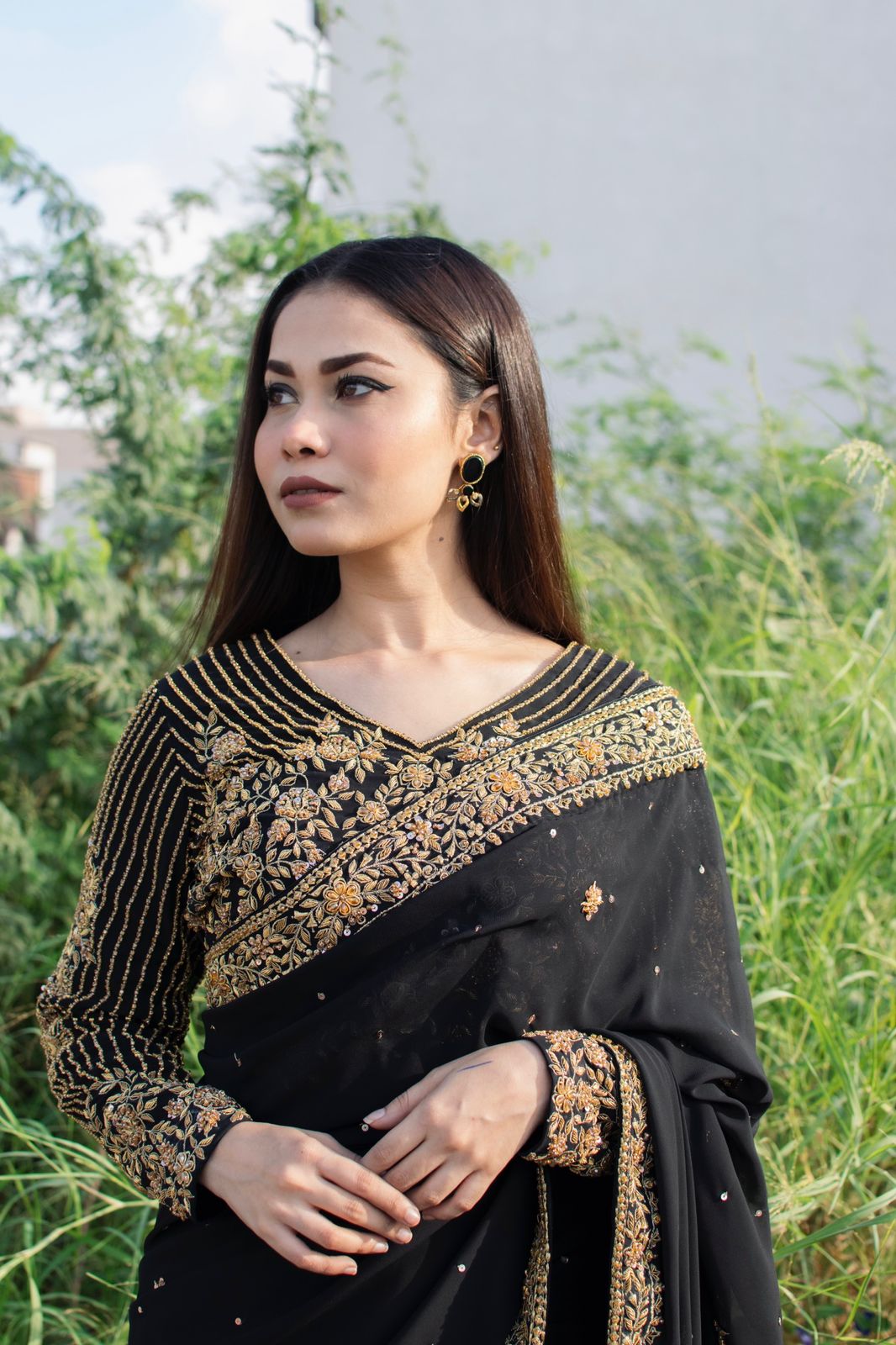 * Taar, dhabka , dargozi handwork on bodice and sleeves .