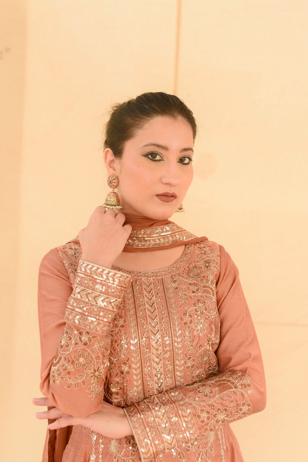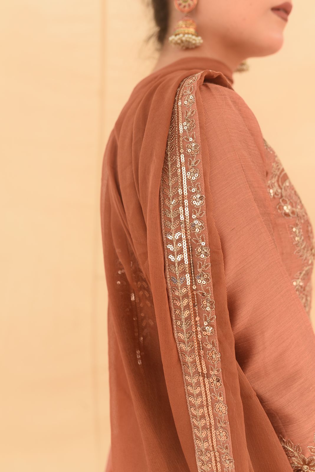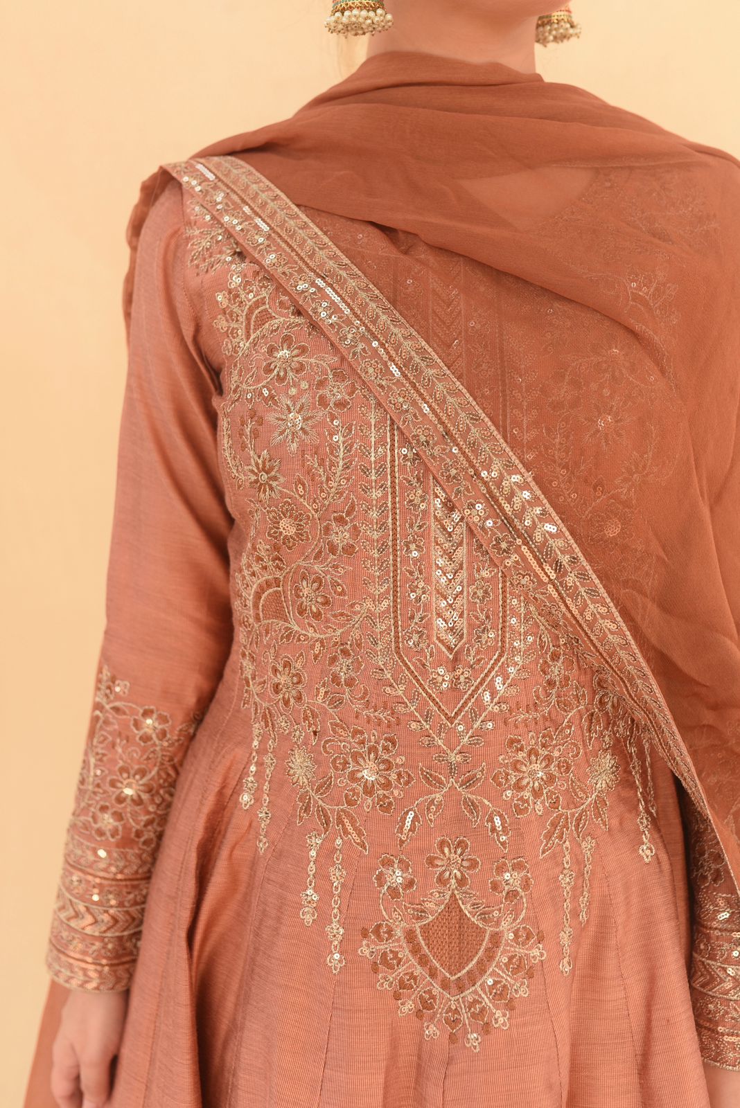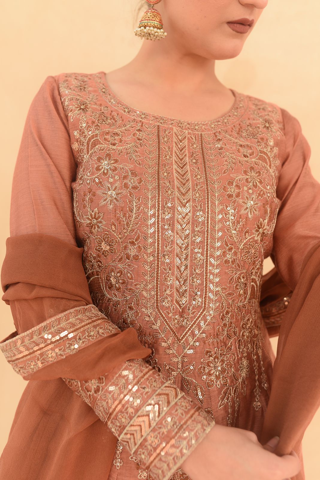 * Embriodery and sequence on neckline of pishwas