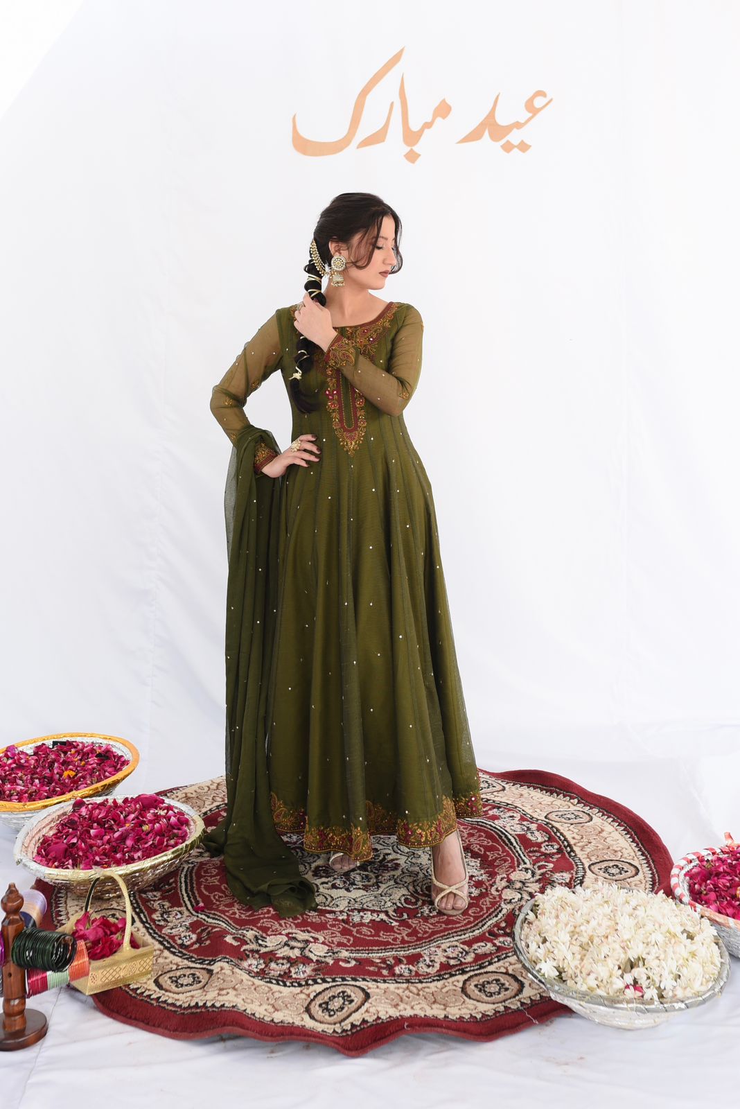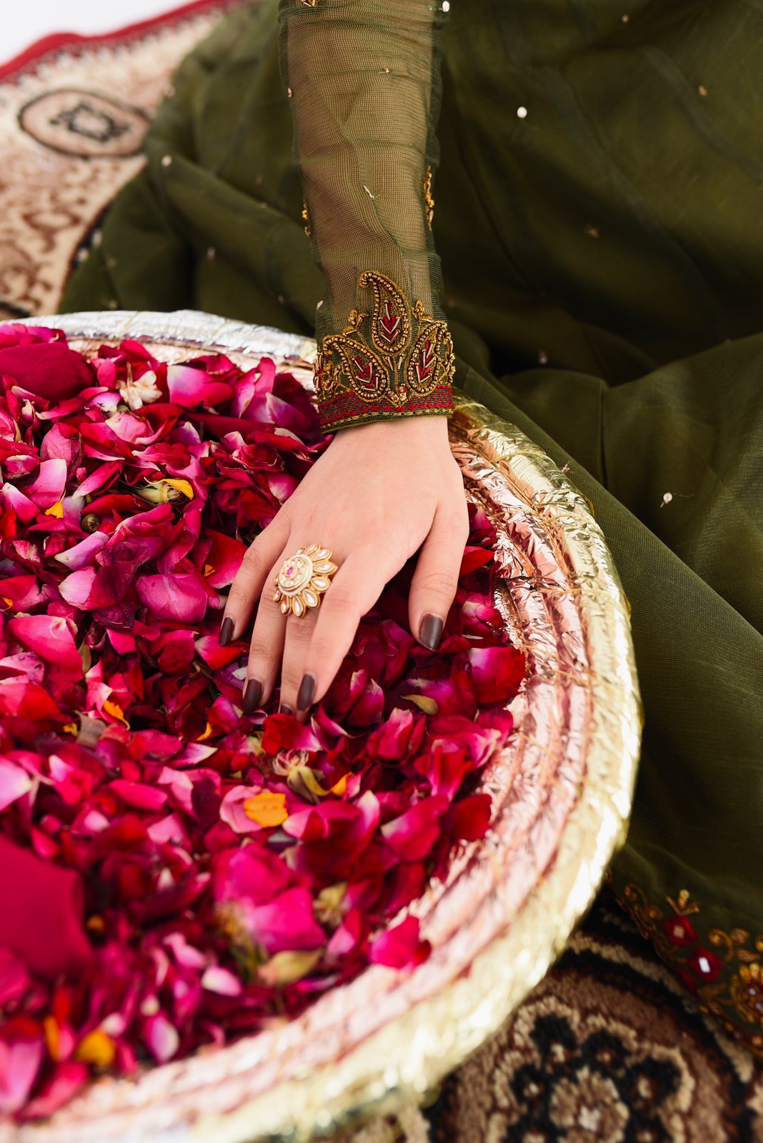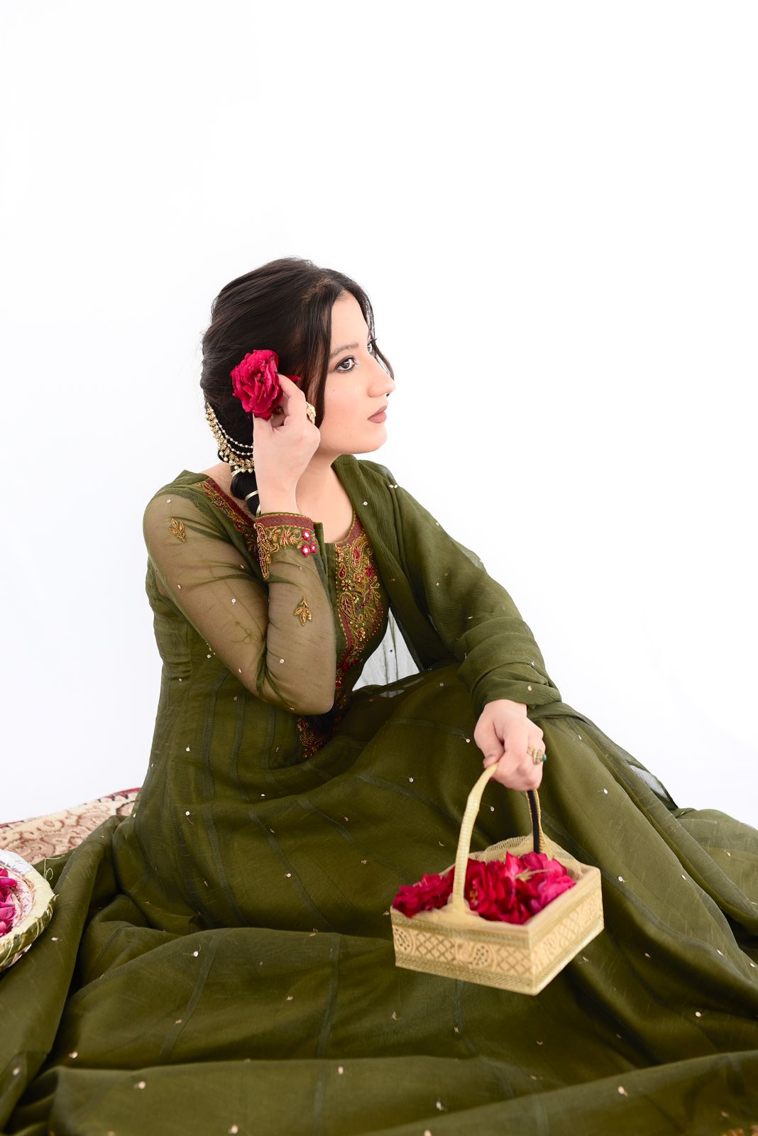 * Sitara , sheesha and zardozi handwork on bodice and sleeves of pishwaas