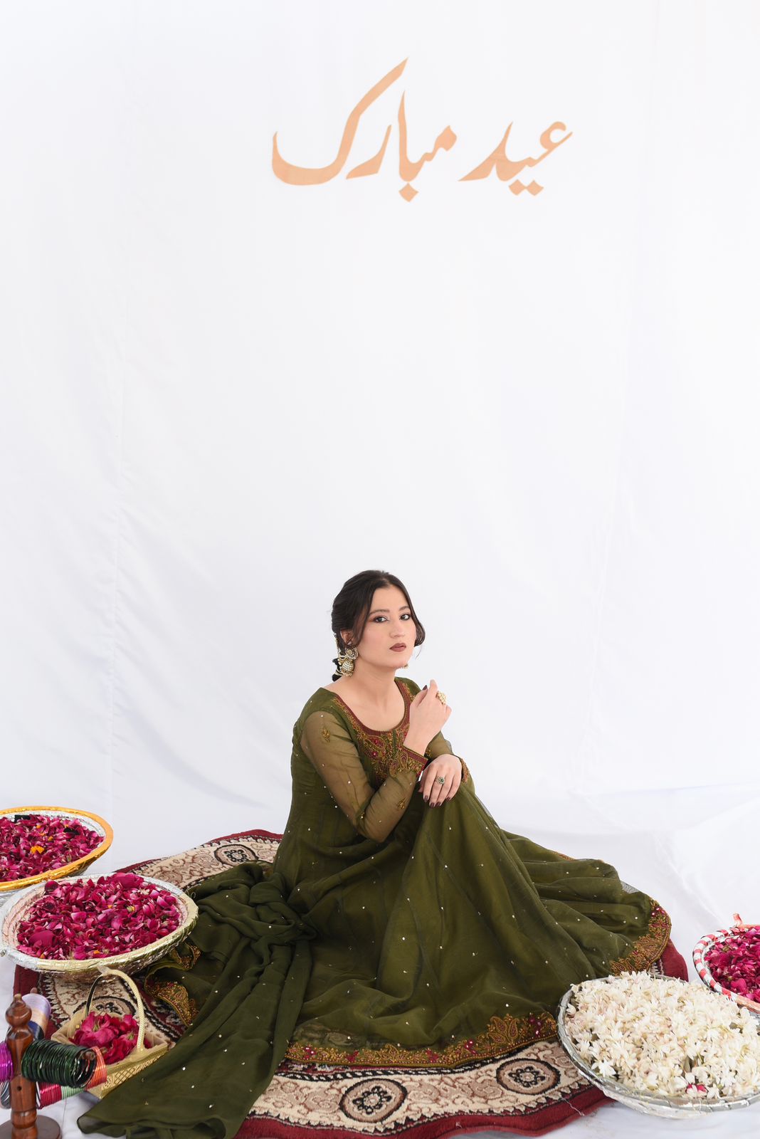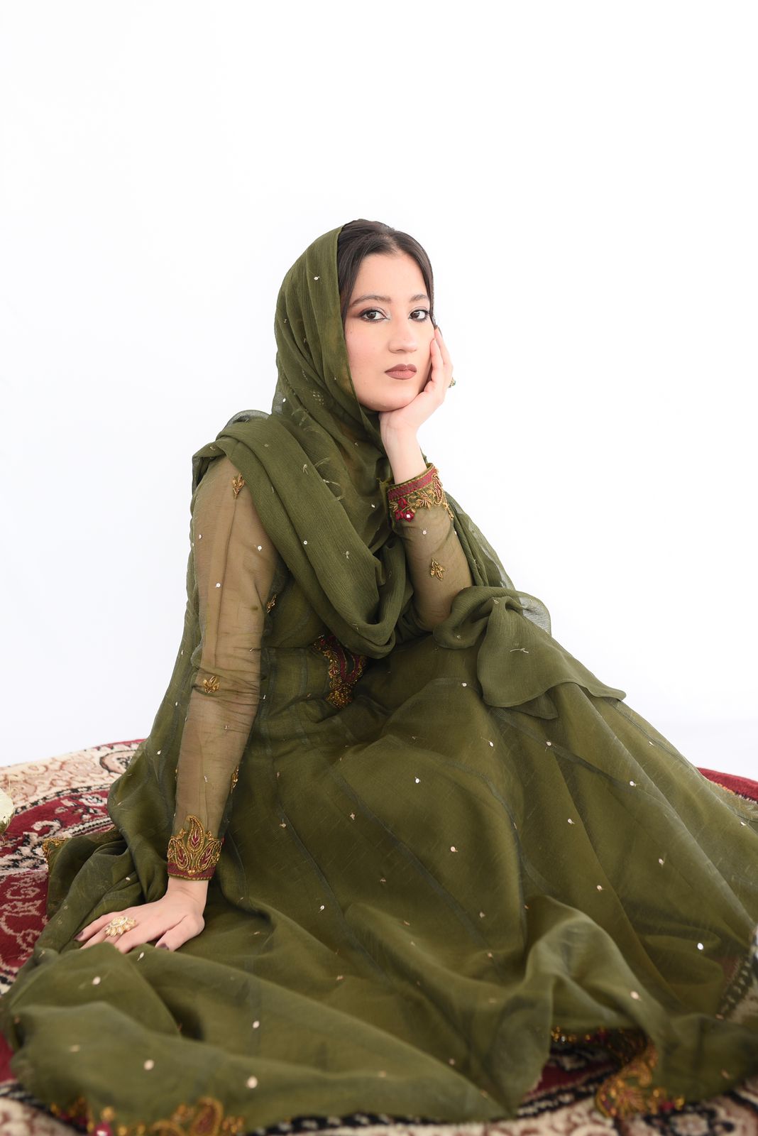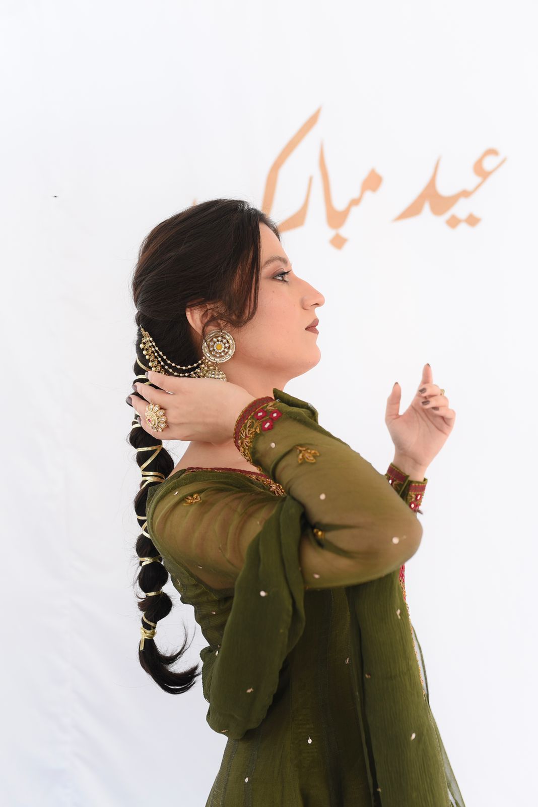 * Sitara , sheesha and zardozi handwork on bodice and sleeves of pishwaas